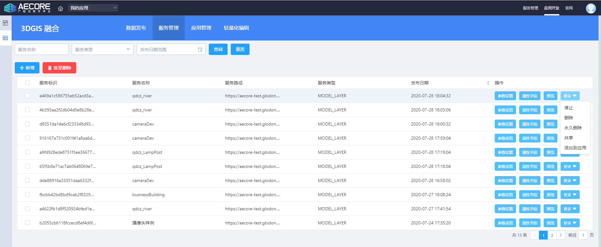 step1:登录AECORE,创建应用,开通3DGIS服务,点击查看3DGIS服务详细操作手册