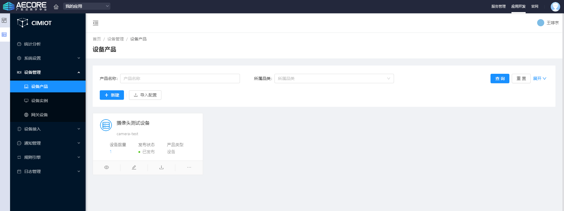 添加产品,配置物模型