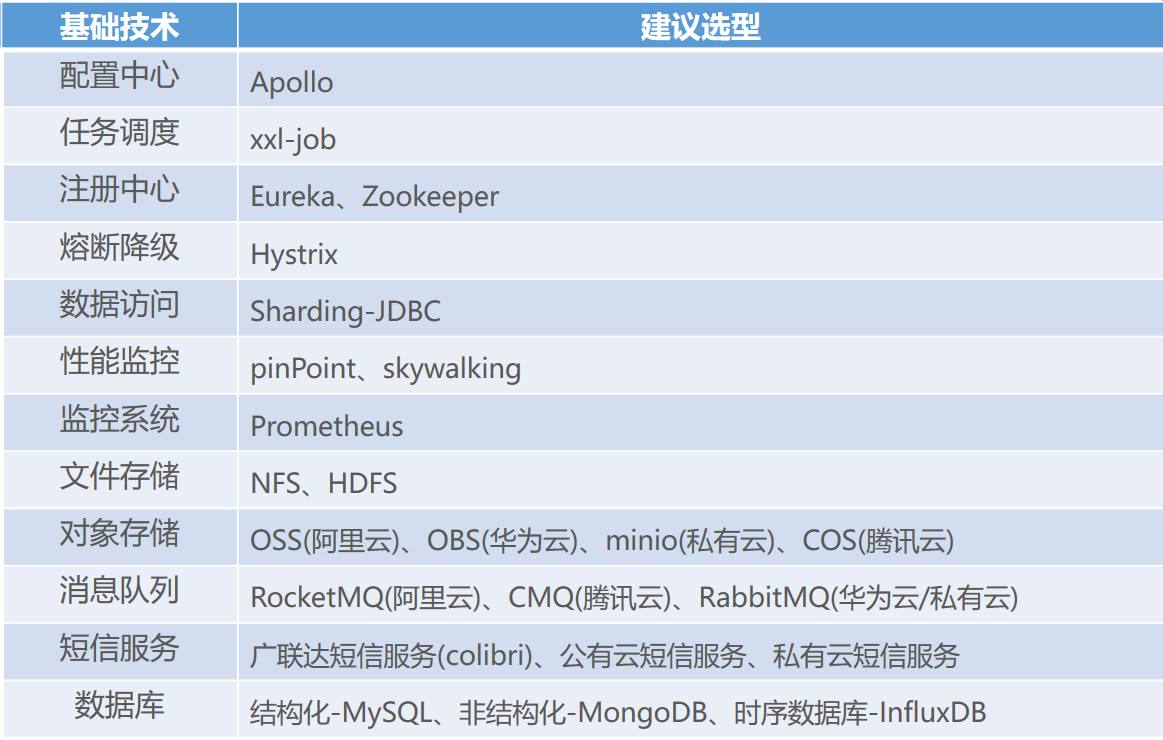 通过日常开发过程积累,基于Spring Cloud社区组件以及公司业务发展需求,对基础技术选型。